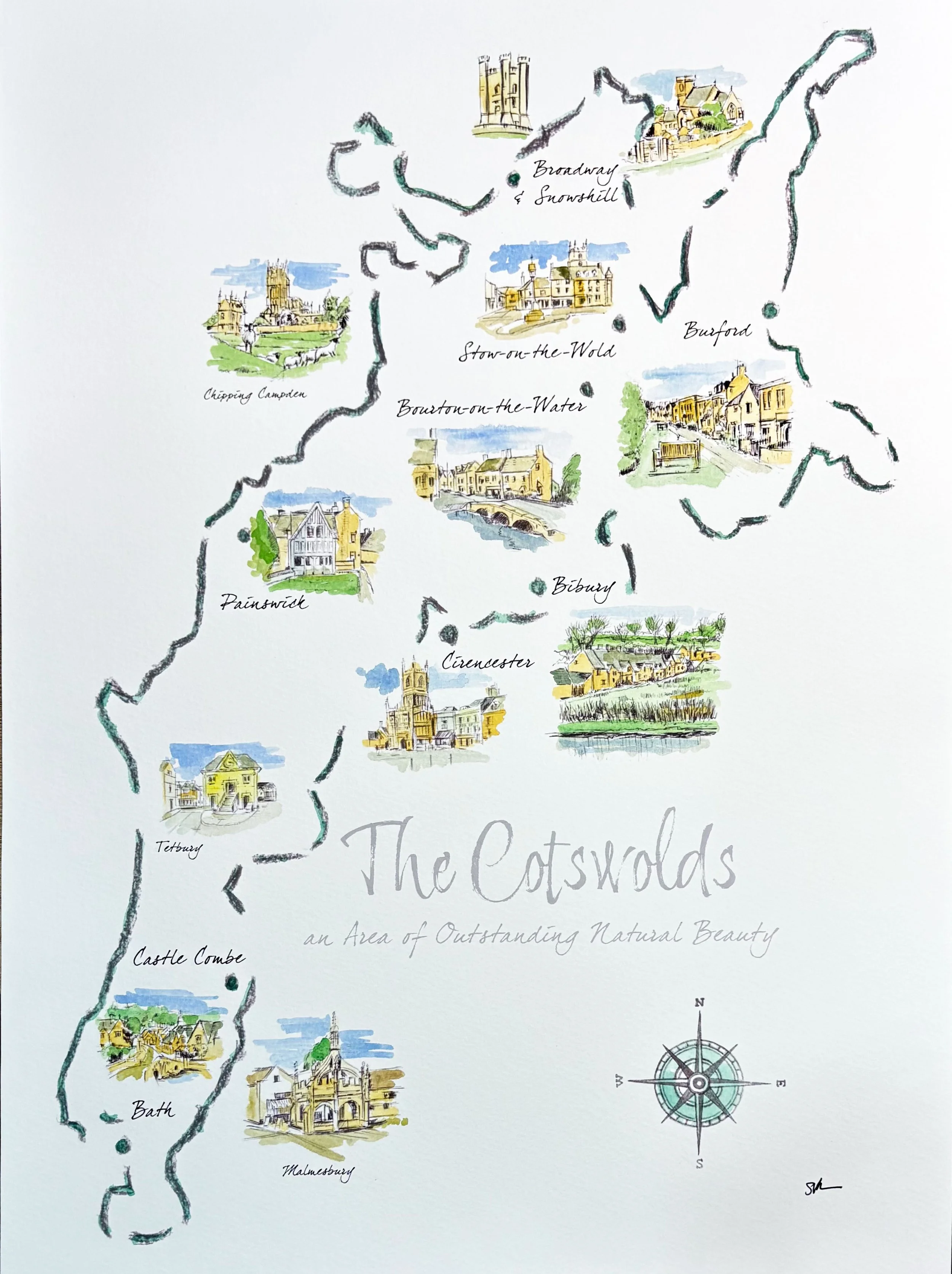 West Oxfordshire and Cotswold watercolour sketches available as prints, and cards.