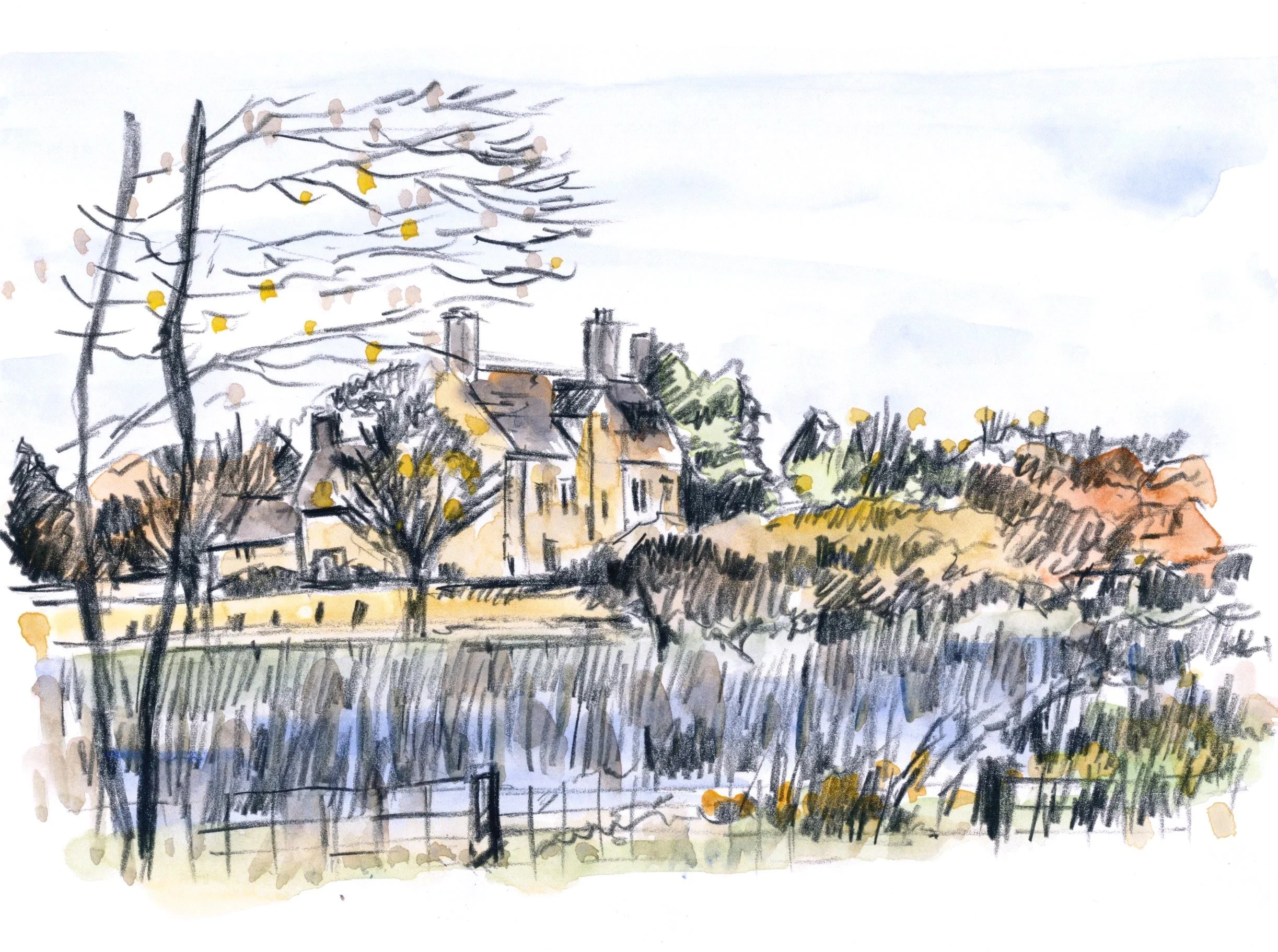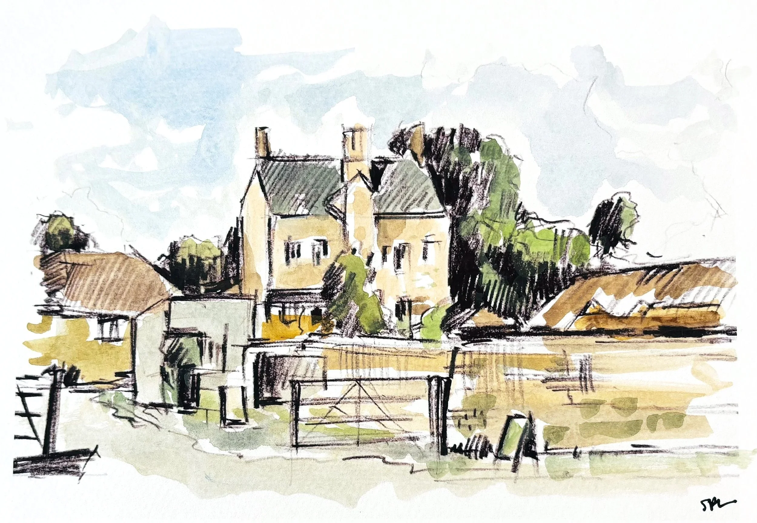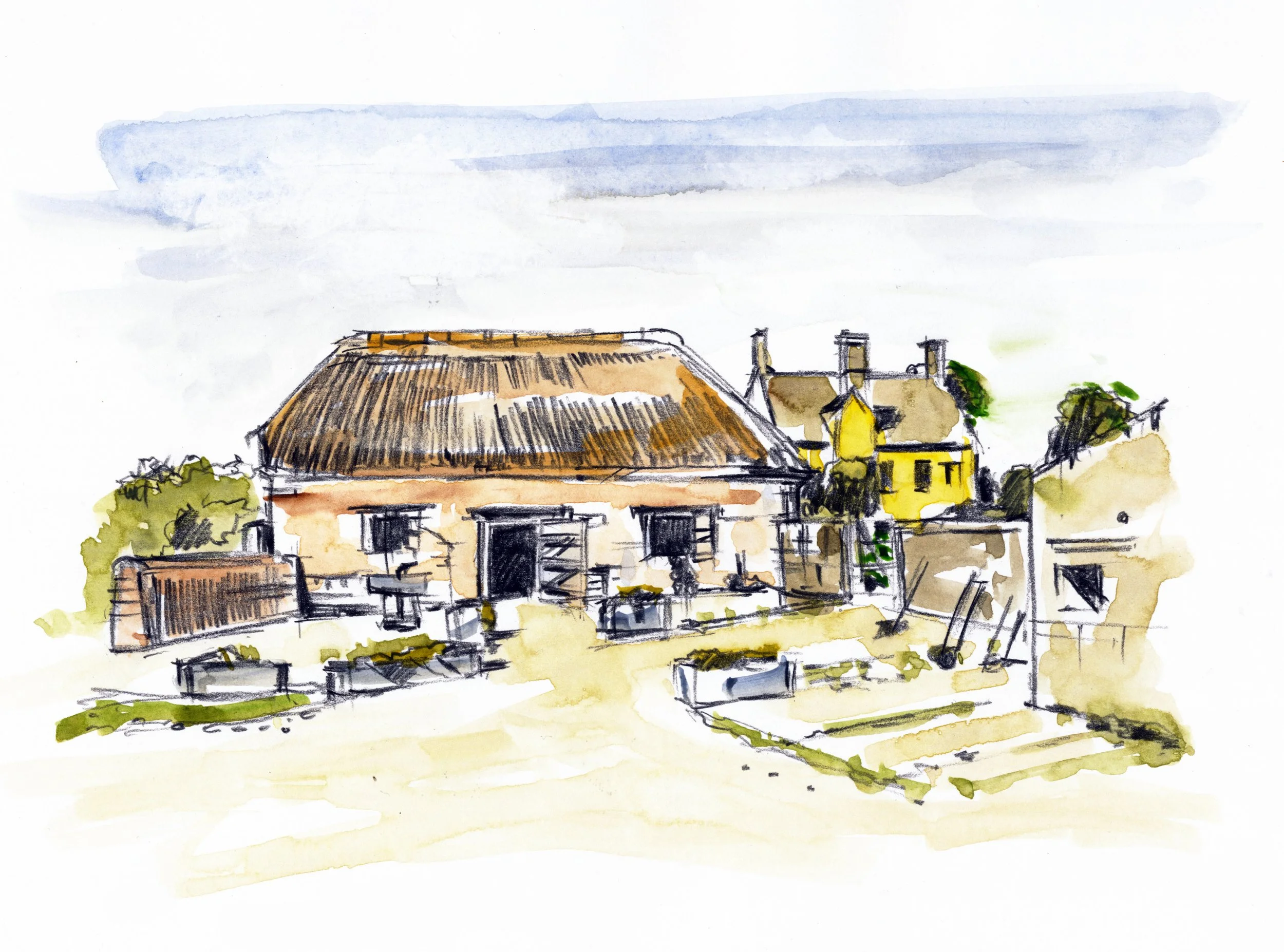 This collection of original artworks was created in response to the character and atmosphere of the farm. The series includes loose watercolour sketches, expressive line drawings and original acrylic paintings inspired by the buildings, landscapes and everyday details found across Cogges.